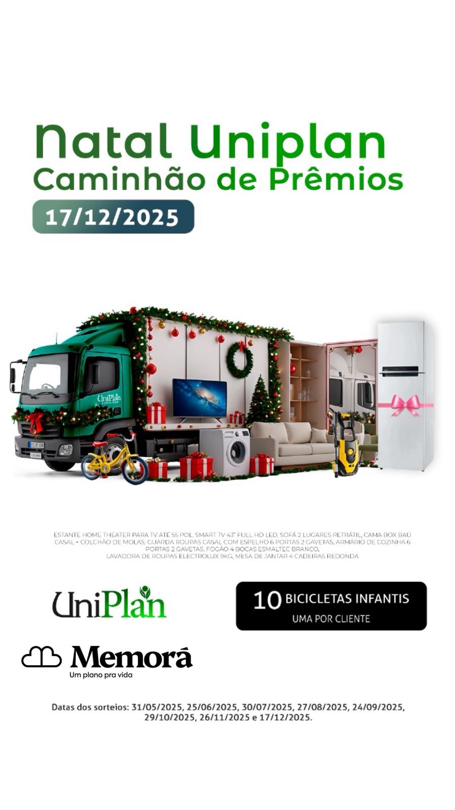 Além da ação infantil, os grupos confirmaram que os clientes já começaram a receber os prêmios da campanha de final de ano, que promete um verdadeiro caminhão de recompensas para quem mantém as mensalidades em dia. A iniciativa reforça o compromisso do Grupo Uniplan e Memorá em valorizar seus associados, oferecendo benefícios reais, atendimento humanizado e experiências que fortalecem os laços com a comunidade seridoense. Novidades e novos sorteios serão divulgados em breve pelos veículos oficiais dos grupos.