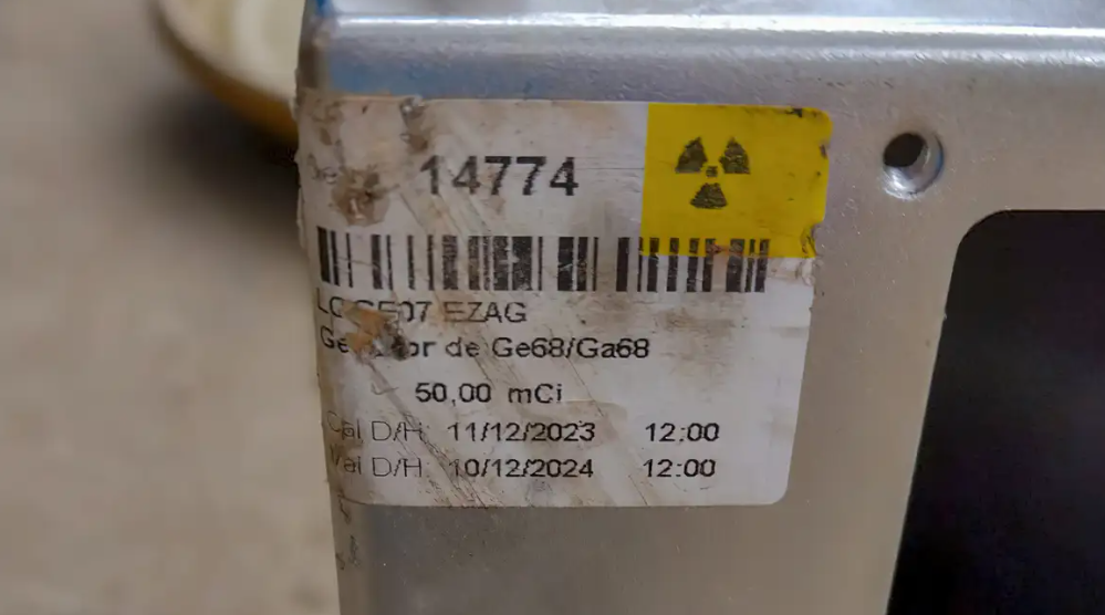 O quinto recipiente continha, no entanto, uma coluna de gerador 68Ge/68Ga (Germânio/Gálio) ativo, “contendo uma dose de 27,9 mCi [milicurie, medida de radioatividade] de atividade do gerador de 68Ge/68Ga, que seria utilizada para um único exame de cintilografia, ou seja, é uma dose muito baixa e um volume muito pequeno”, disse a Cnen, em nota.