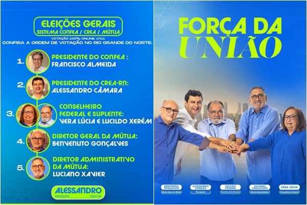 A chapa traz ainda nomes fortes como o do engenheiro agrônomo Benvenuto Gonçalves e o engenheiro civil Luciano Xavier, como também os engenheiros civis Vera Lúcia e Lucildo para Conselho Federal.