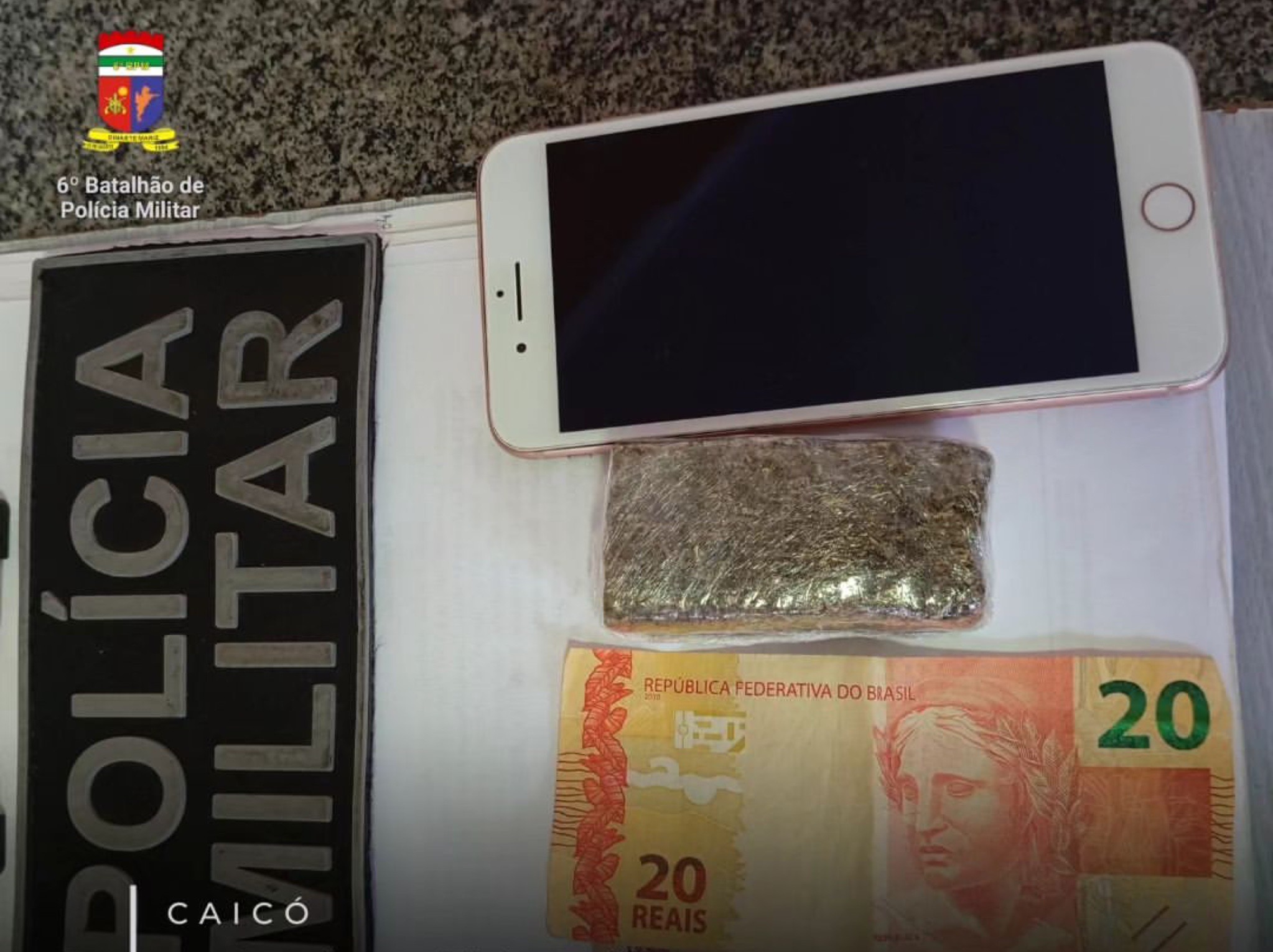 O acusado alegou ter comprado a droga por R$ 120,00. Além da substância, foram encontrados R$ 25,00 em espécie e um iPhone 8 Plus (com senha não liberada) de cor branca com bordas rosas.