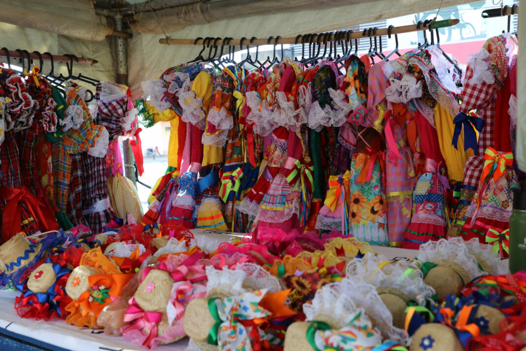 Aldira Ribeiro, de 42 anos, também é uma das empreendedoras que está alocada na Avenida Antônio Basílio. Em estrutura, ela conta com dois funcionários e duas tendas, divididas entre roupas femininas e masculinas, feitas em confecção própria, e demais artigos juninos. A comerciante destaca que a diversidade de produtos é essencial para atrair uma clientela variada e aumentar as chances de vendas durante o período junino.