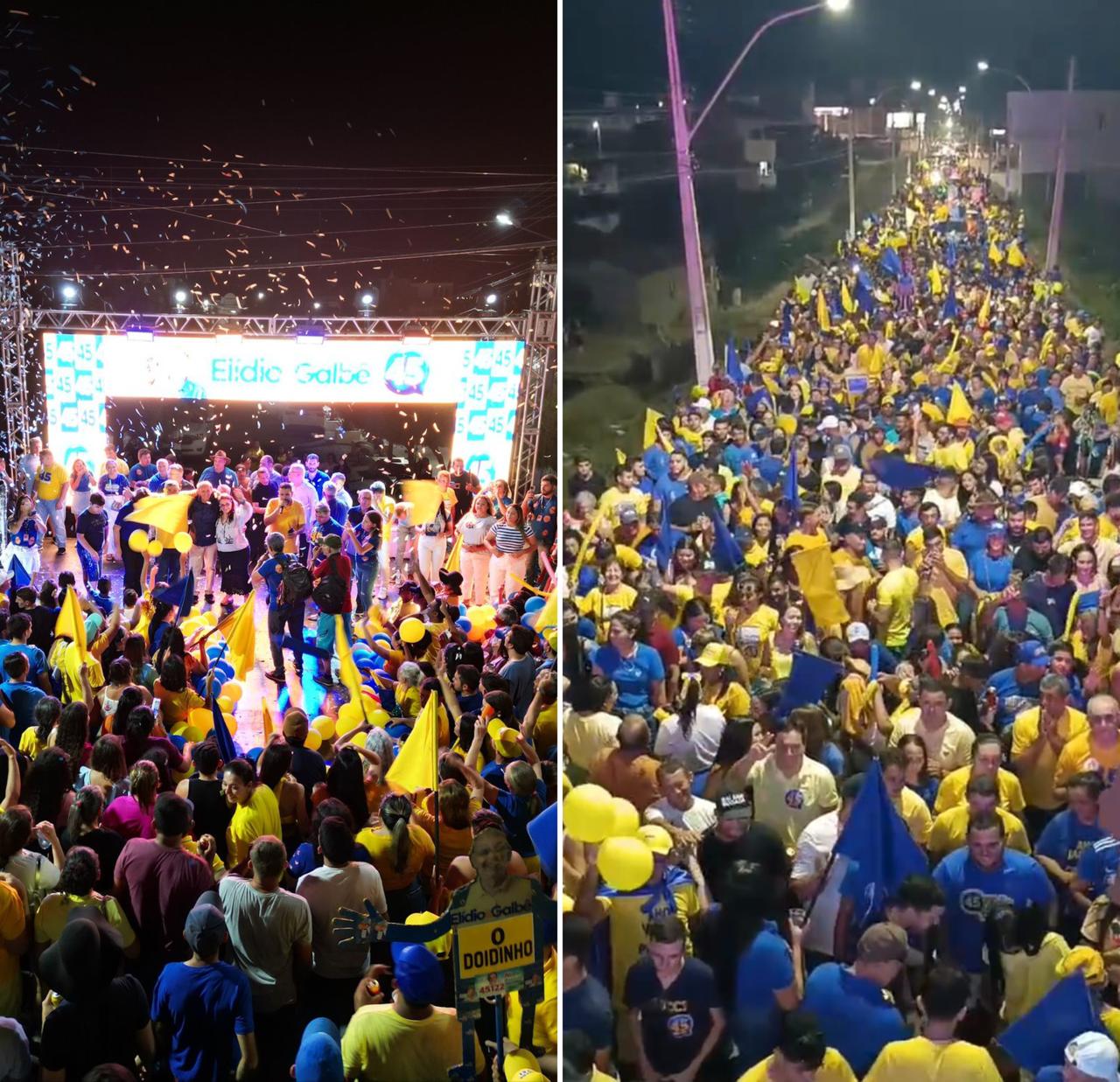No palco principal, o candidato Elídio Queiroz viu pessoas emocionadas, ouviu frases de incentivo e sentiu muita energia positiva. Ao lado de Elídio, estavam seu candidato a vice, Galbê Maia, o atual vice-prefeito Joãozinho de Joca, a ex-prefeita Josidete Maia, e muitas lideranças locais. Também estiveram presentes os deputados estaduais Nelter Queiroz e Ubaldo Fernandes, além do líder do PP no estado, o deputado federal João Maia, partido que indicou os 10 candidatos a vereador de Elídio.