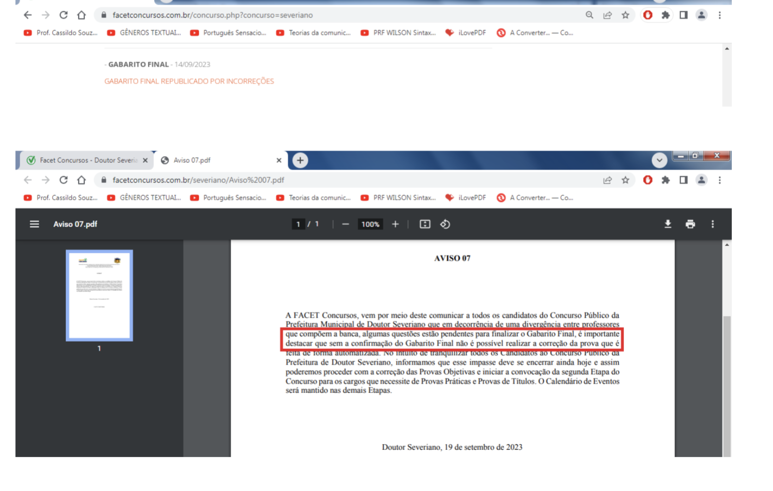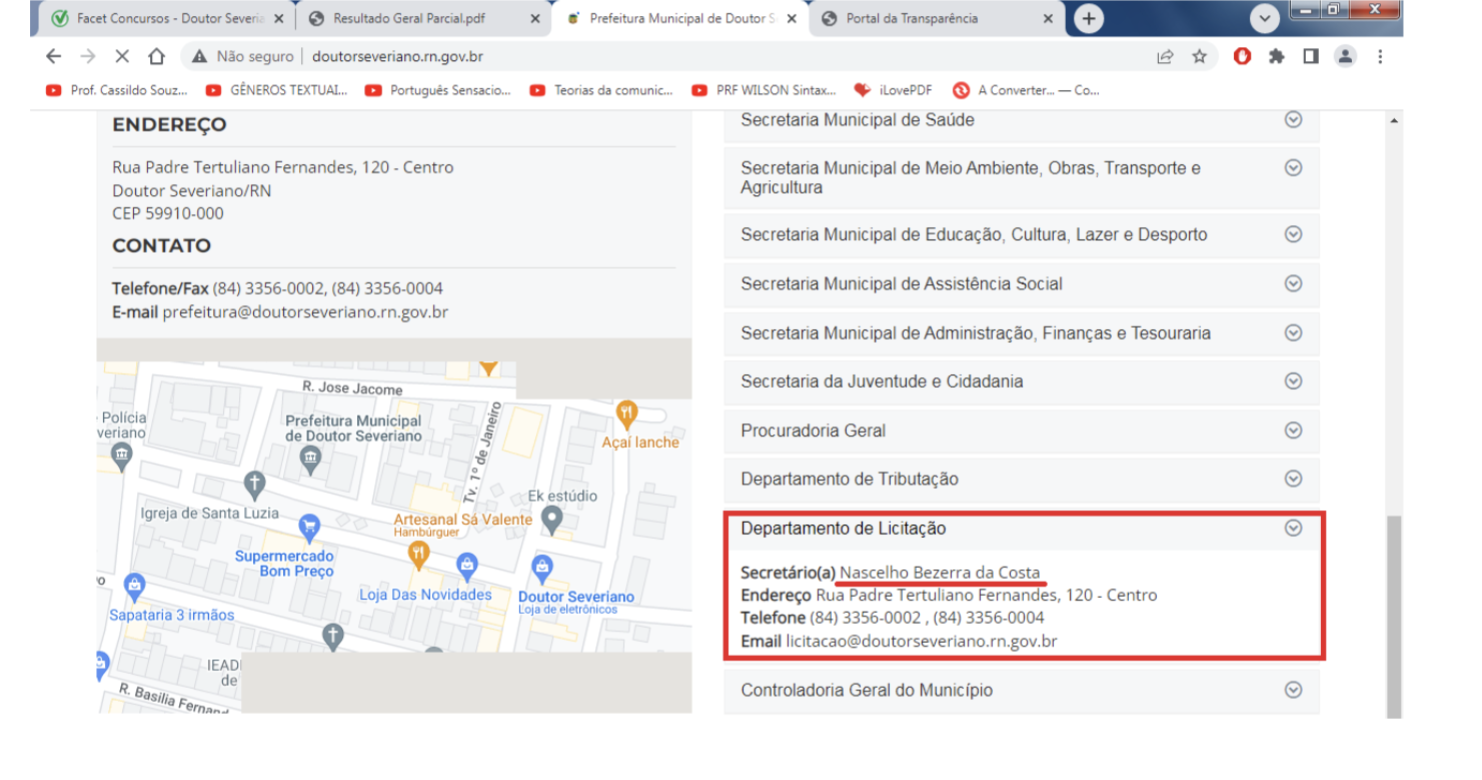 Candidatos estão consolidando denúncias contra a Prefeitura de Doutor Severiano-RN no que compete ao Concurso Público em andamento no município, cujo resultado geral parcial foi divulgado no dia 24 de setembro, incomumente em um domingo, após descumprimento da previsão do edital e, posteriormente, comunicados da empresa realizadora.
