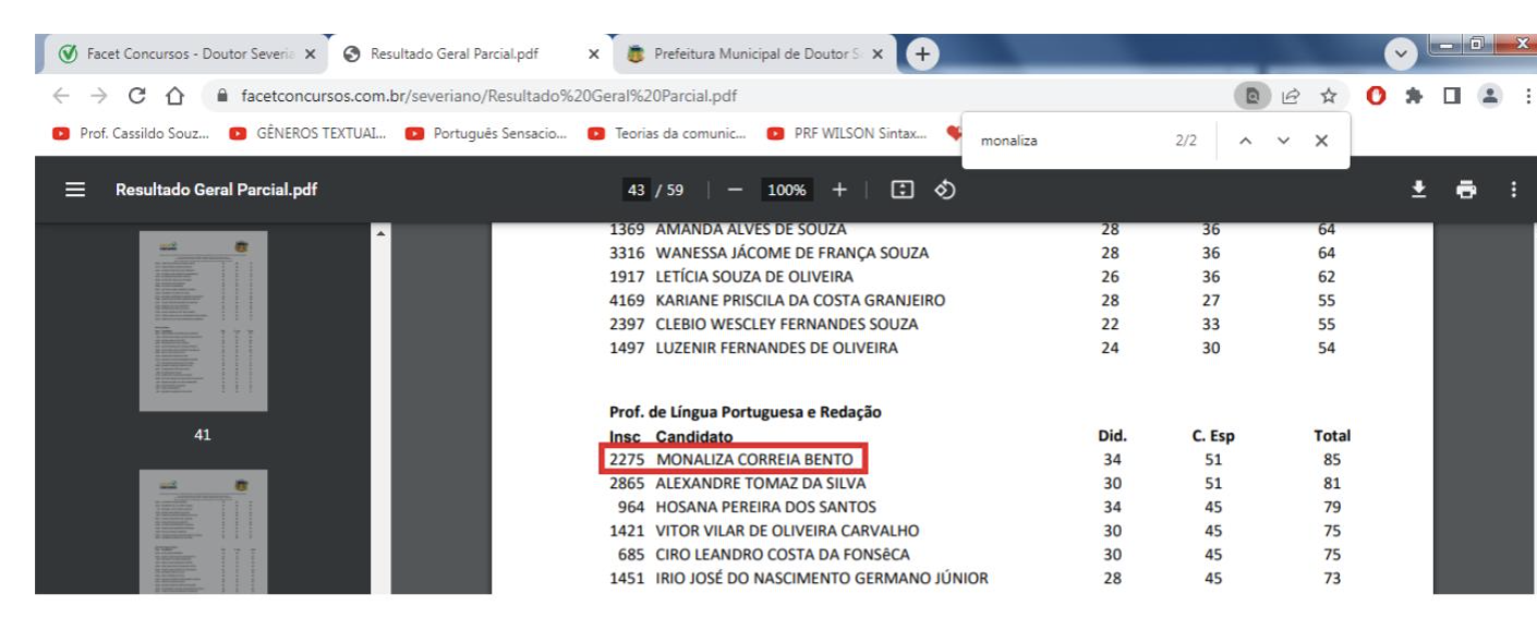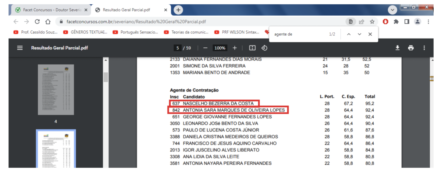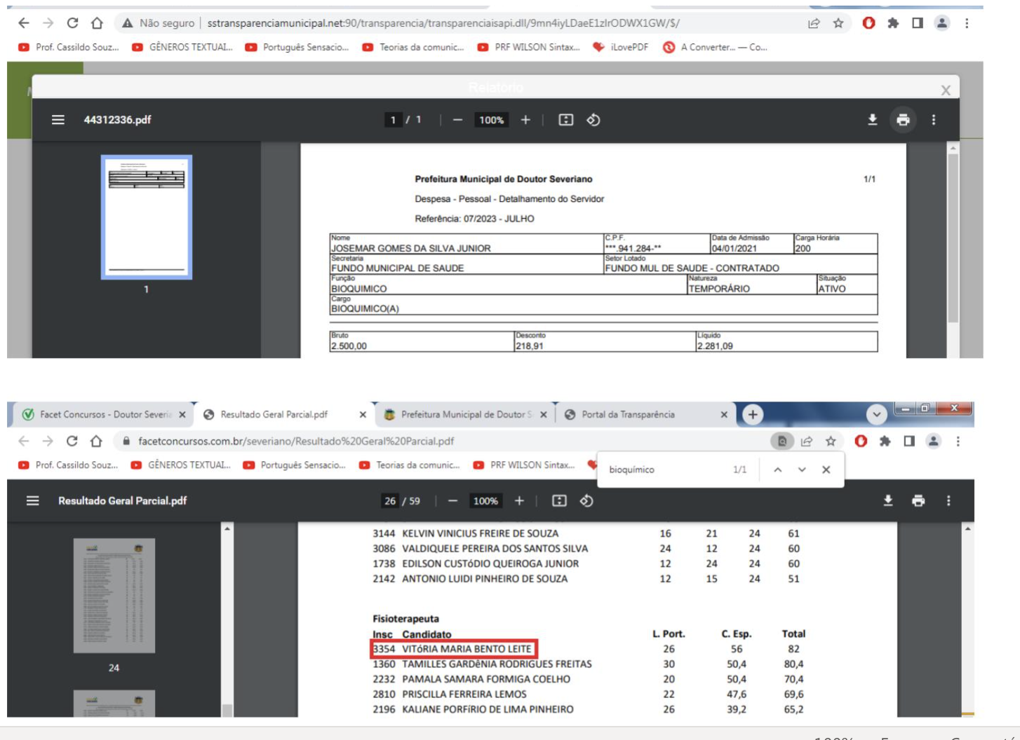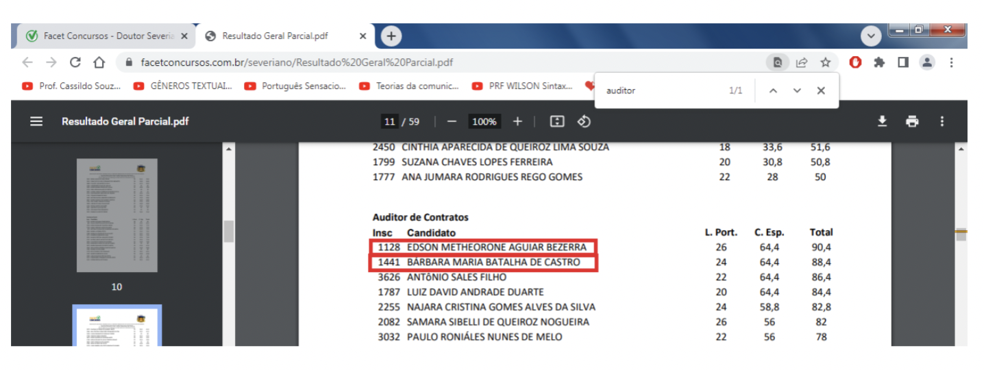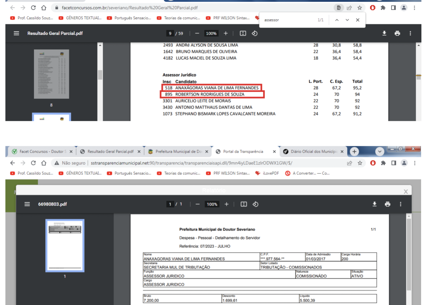 Aparecem em primeiras colocações: secretário de Licitação e chefe da contabilidade (para o cargo de agente de contratação), pregoeiro (para o cargo de auditor de contratos), atuais assessores jurídicos nomeados (para o cargo de assessor jurídico), assistente social contratada (para o cargo de assistente social), fisioterapeuta contratada (para o cargo de fisioterapeuta), bioquímico contratado (para o cargo de bioquímico), professora de português contratada (para o cargo de professor de língua portuguesa), maestro (para o cargo de professor de música), dentre outros.