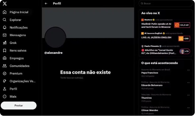 Na manhã desta sexta, no entanto, a página exibia o aviso: “Essa conta não existe. Tente buscar outro(a).”