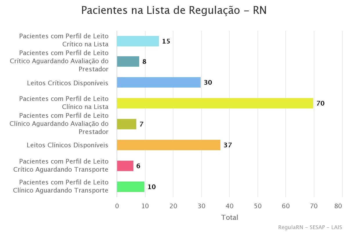 Em relação aos leitos clínicos, havia 70 pacientes na lista de regulação até o momento desta publicação.