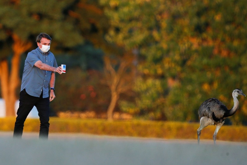 O senador Renan Calheiros não esqueceu nem da ema do Palácio Alvorada em seu relatório. No capítulo “O papel do presidente da República”, o relator incluiu uma foto do presidente Bolsonaro mostrando uma caixa de cloroquina para uma ema.