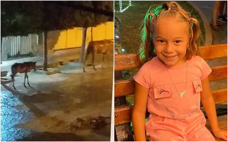 Sophia foi jogada ao chão pela força do coice que sofreu de um cavalo que estava solto pelas ruas da cidade. Sentada na calçada de casa, a menina foi atingida pelo animal desembestado e feroz.