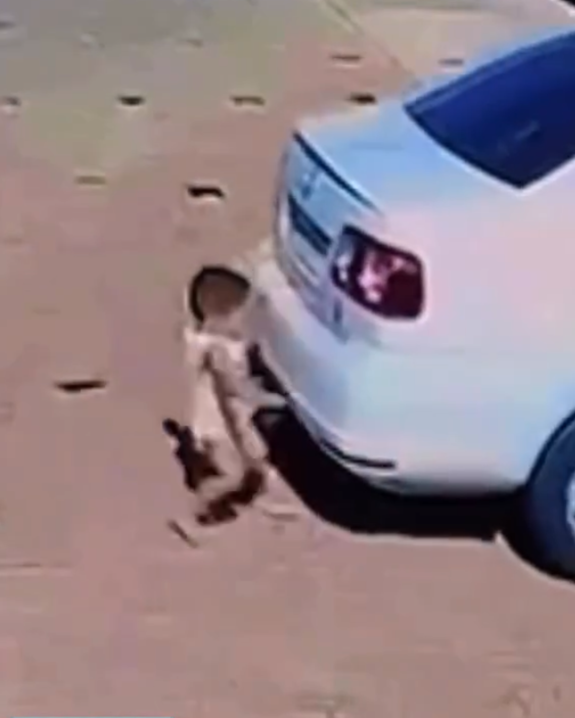 Imagens de uma câmera de segurança registraram toda a cena. Nas gravações, é possível ver o momento em que a criança é atingida e fica sob o carro.