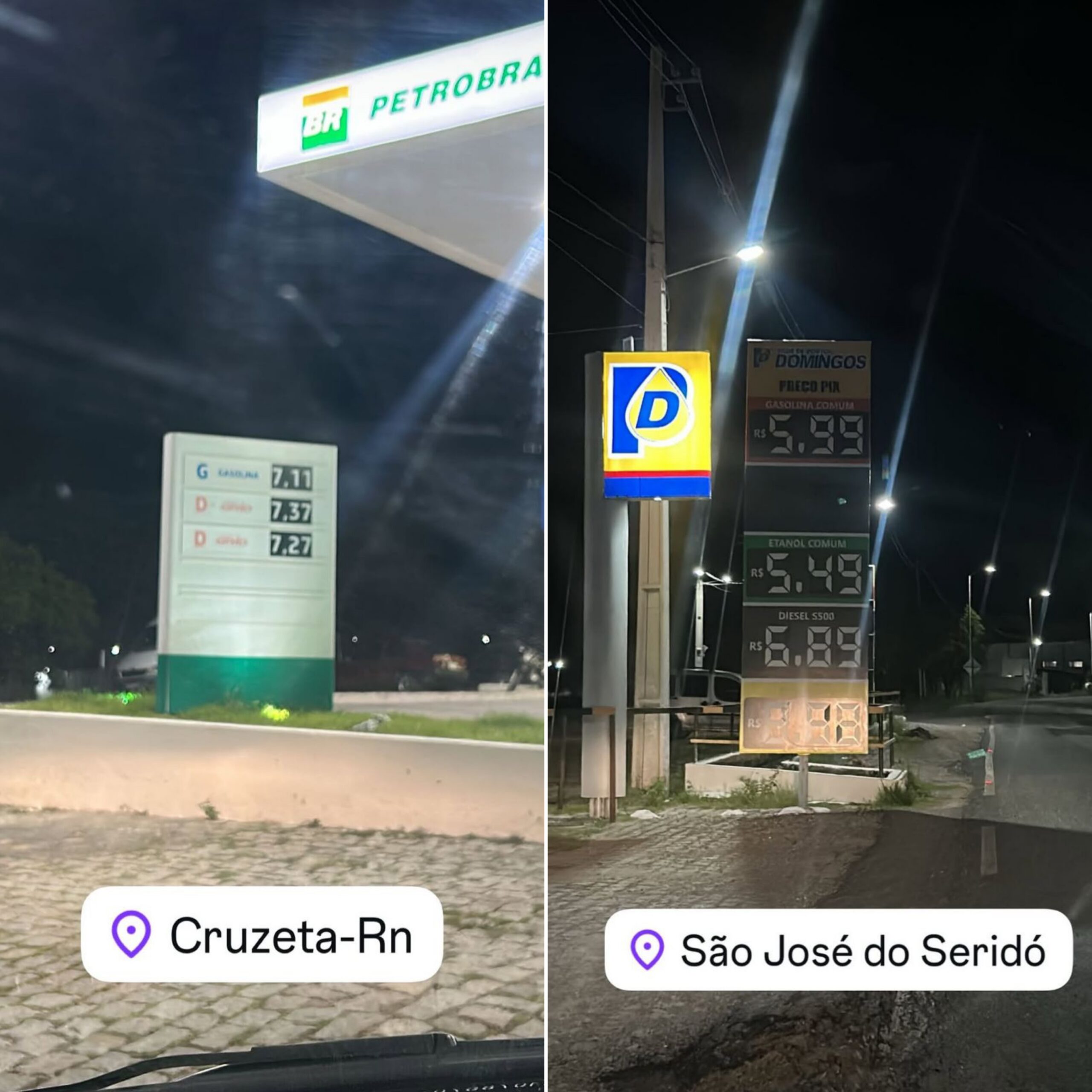 Segundo os consumidores, enquanto em Cruzeta o litro da gasolina está sendo vendido a R$ 7,11, na cidade vizinha de São José do Seridó, localizada a apenas 12 quilômetros de distância, o mesmo combustível pode ser encontrado por R$ 5,99, uma diferença de R$ 1,12 por litro.