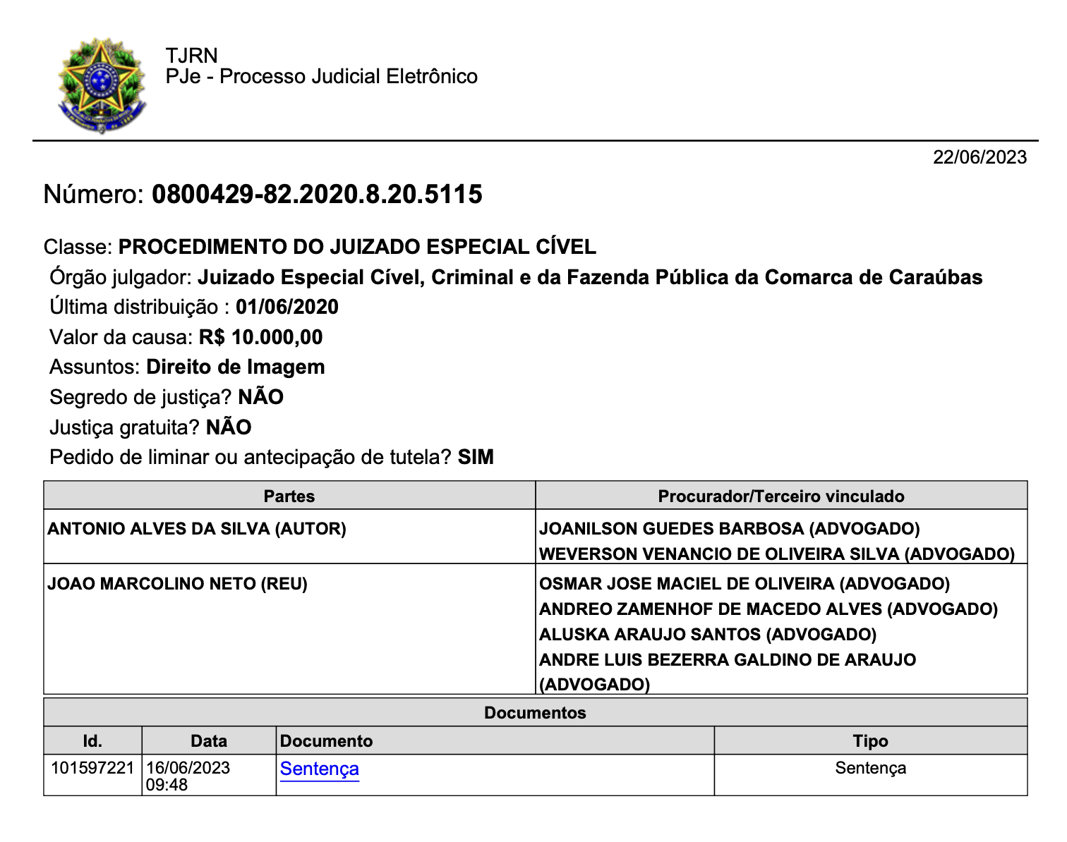 O Juizado Especial Cível, Criminal e da Fazenda Pública da Comarca de Caraúbas condenou o blogueiro João Marcolino a pagar indenização de R$ 5 mil por publicações de “fake news” contra o prefeito Juninho Alves (PSDB). Em uma das postagens criminosas o blogueiro tentou desconstruir a imagem do gestor imputando-o envolvimento com crimes pesados, veja: “Prefeito do Oeste envolvido com pistolagem e grupo de extermínio”.
