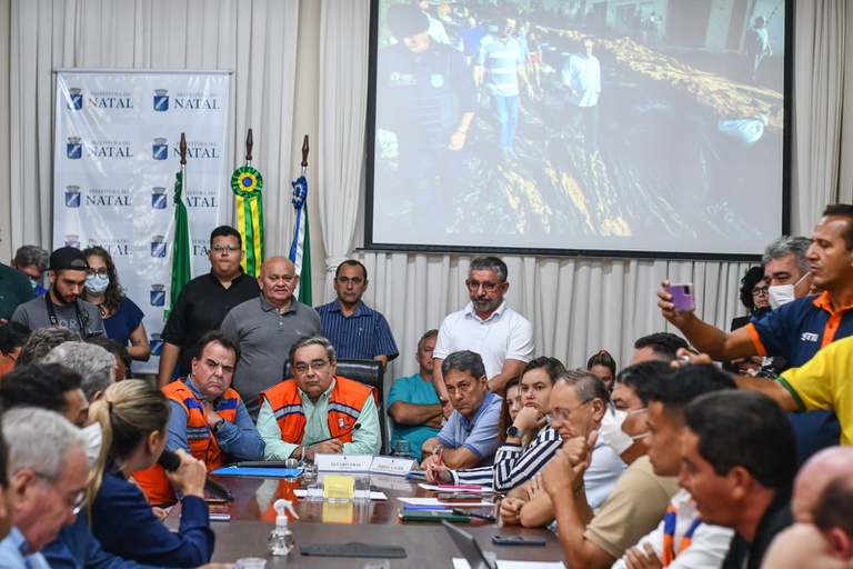 Neste sábado (9), na Prefeitura de Natal, o secretário nacional de Proteção e Defesa Civil, coronel Alexandre Lucas, reuniu-se com as defesas civis locais para disponibilizar apoio federal e agilizar a liberação de recursos para socorrer a população afetada.