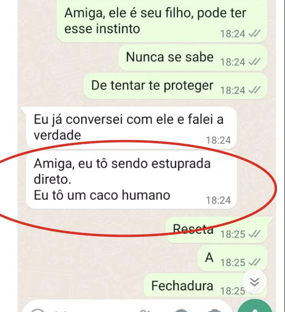“Amiga, eu tô sendo estuprada direto. Eu tô um caco humano”