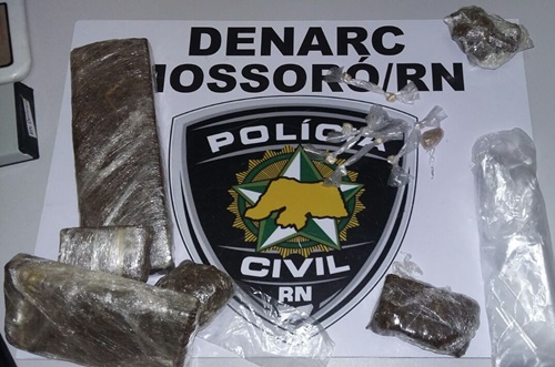 Após abordagem, a polícia apreendeu com o suspeito e dentro de sua residência a quantidade de 11 pedras de crack embaladas para revenda, vários sacos de dindins para a embalagem da droga, 600 gramas de maconha em móveis da casa, além de tabletes grandes da mesma droga, enterrados no quintal. Esta é a quarta prisão relacionada ao tráfico de drogas realizado pela Denarc de Mossoró, somente nesta semana.