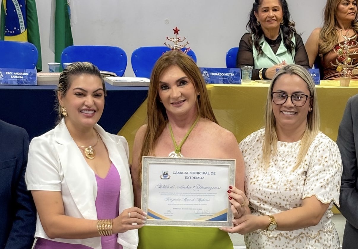 A deputada estadual Terezinha Maia foi homenageada, nesta terça-feira (23), pela Câmara Municipal de Extremoz com o Título de Cidadã Extremozense, uma das mais importantes honrarias concedidas pelo Legislativo municipal. A solenidade reuniu prefeita Jussara Salaes, vice-prefeito Izidoro Filho, vereadores, autoridades, lideranças políticas e a população, em um momento marcado por emoção, reconhecimento e reafirmação de parcerias.