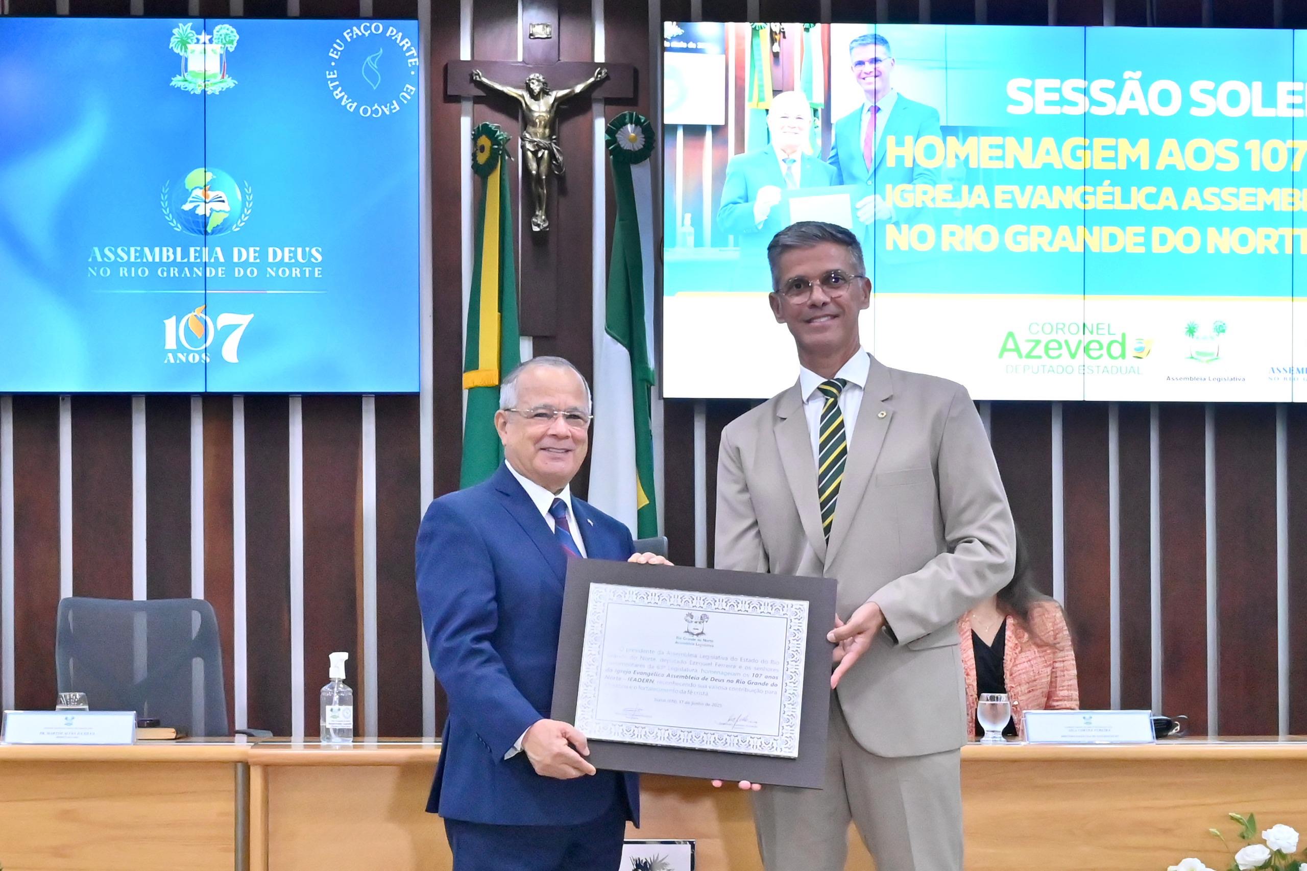Deputado Coronel Azevedo presta homenagem pelos 107 anos da Assembleia de Deus no RN