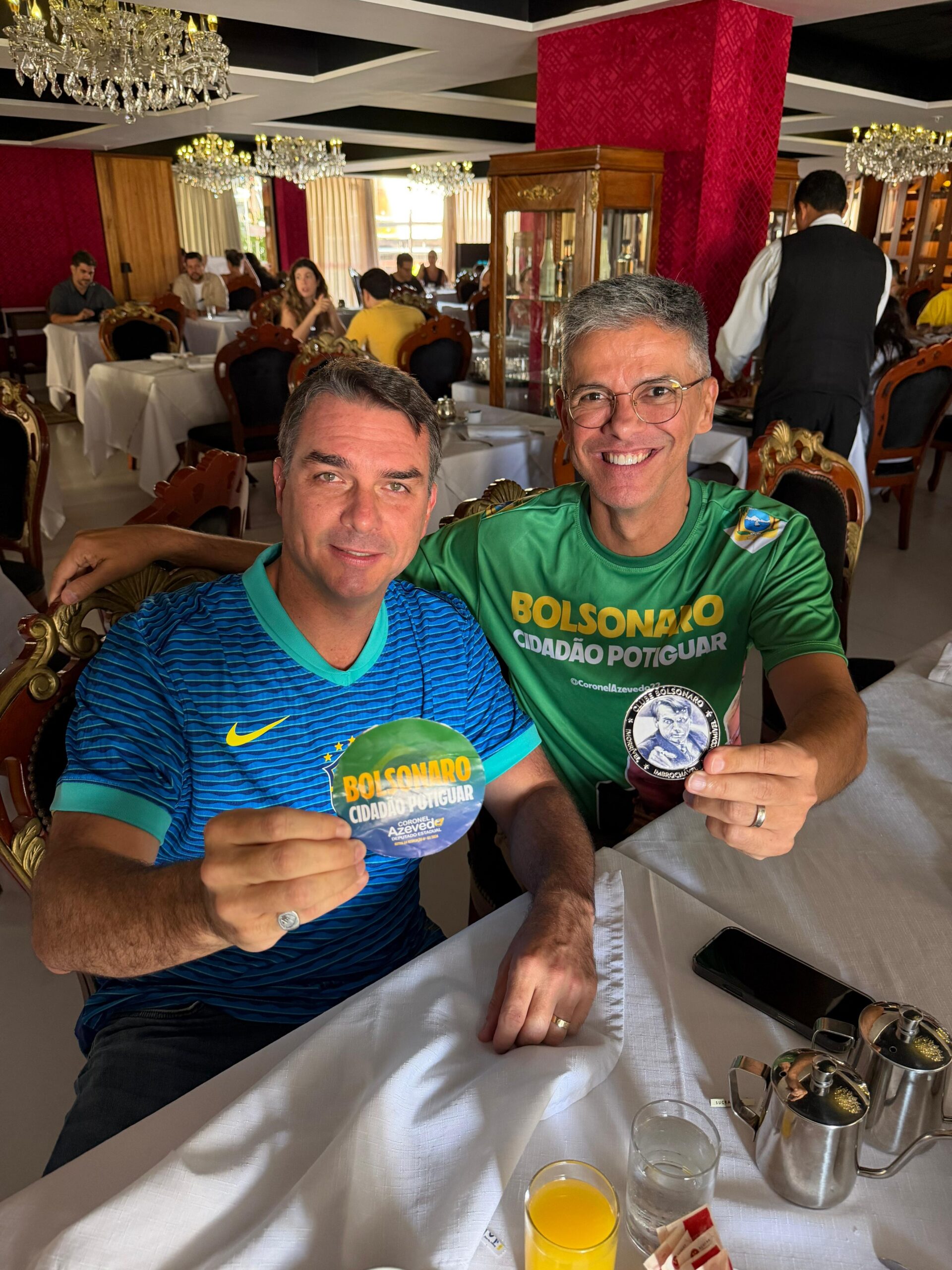 Na visita de Flávio Bolsonaro ao Rio Grande do Norte, no dia 21 de março, os dois conversaram sobre política e estratégias para o eleitor conservador.