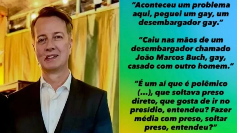 As mensagens fazem referência direta à sua orientação sexual e ao seu estado civil. Uma delas afirmava: “aconteceu um problema aqui, peguei um gay, um desembargador gay”. Outra dizia: “caiu nas mãos de um desembargador chamado João Marcos Buch, gay, casado com outro homem”.