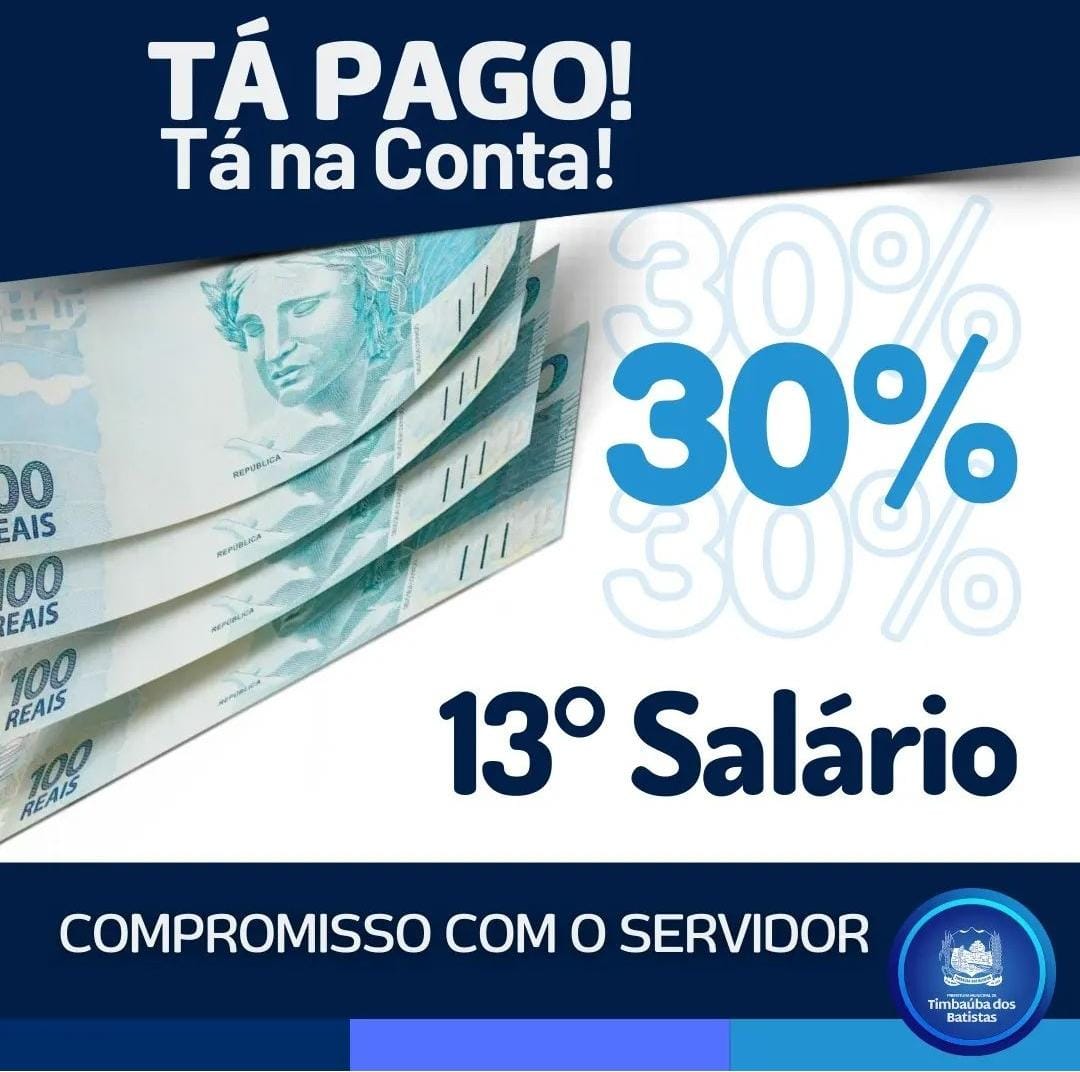 O prefeito de Timbaúba dos Batistas, Ivanildinho Albuquerque, autorizou o pagamento de antecipação de 30% do décimo terceiro salário do funcionalismo municipal referente a 2022.