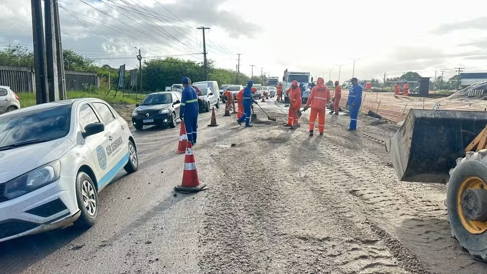 A parte afetada fica em um desvio que foi feito para a construção de um viaduto. Grandes congestionamentos se formaram no trecho – que fica entre Parnamirim e Macaíba – nos últimos dias.