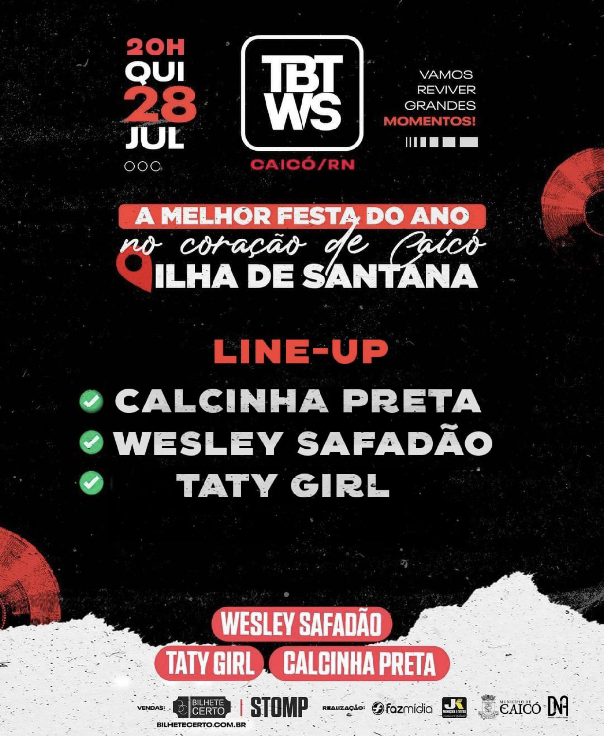 É HOJE! TBT WS na Ilha de Sant’Ana de Caicó; Wesley Safadão, Taty Girl e Calcinha Preta