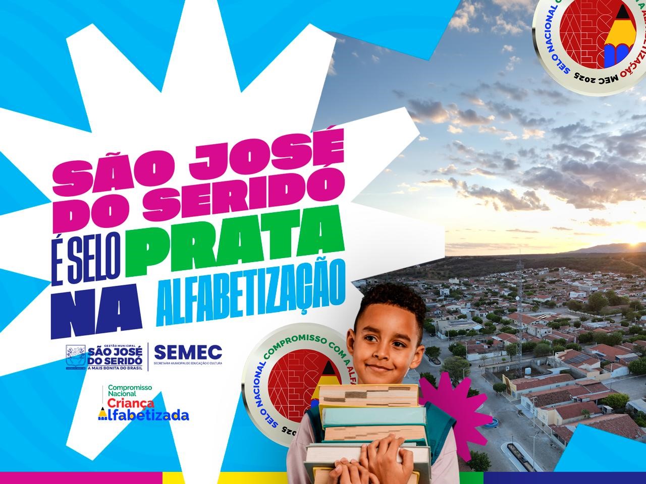 A Secretaria Municipal de Educação e Cultura de São José do Seridó (RN) conquistou o Selo Prata do Selo Nacional Compromisso com a Alfabetização, reconhecimento concedido às redes de ensino que se destacam na formulação e implementação de políticas públicas voltadas à alfabetização infantil.