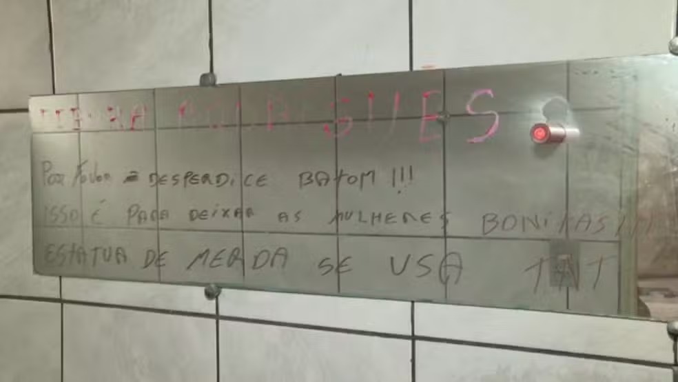 Para a PF, a mensagem deixada no espelho era uma referência à Debora Rodrigues, presa em 2023 após ser identificada pela PF por ter vandalizado a Estátua da Justiça com a inscrição “Perdeu, Mané”.