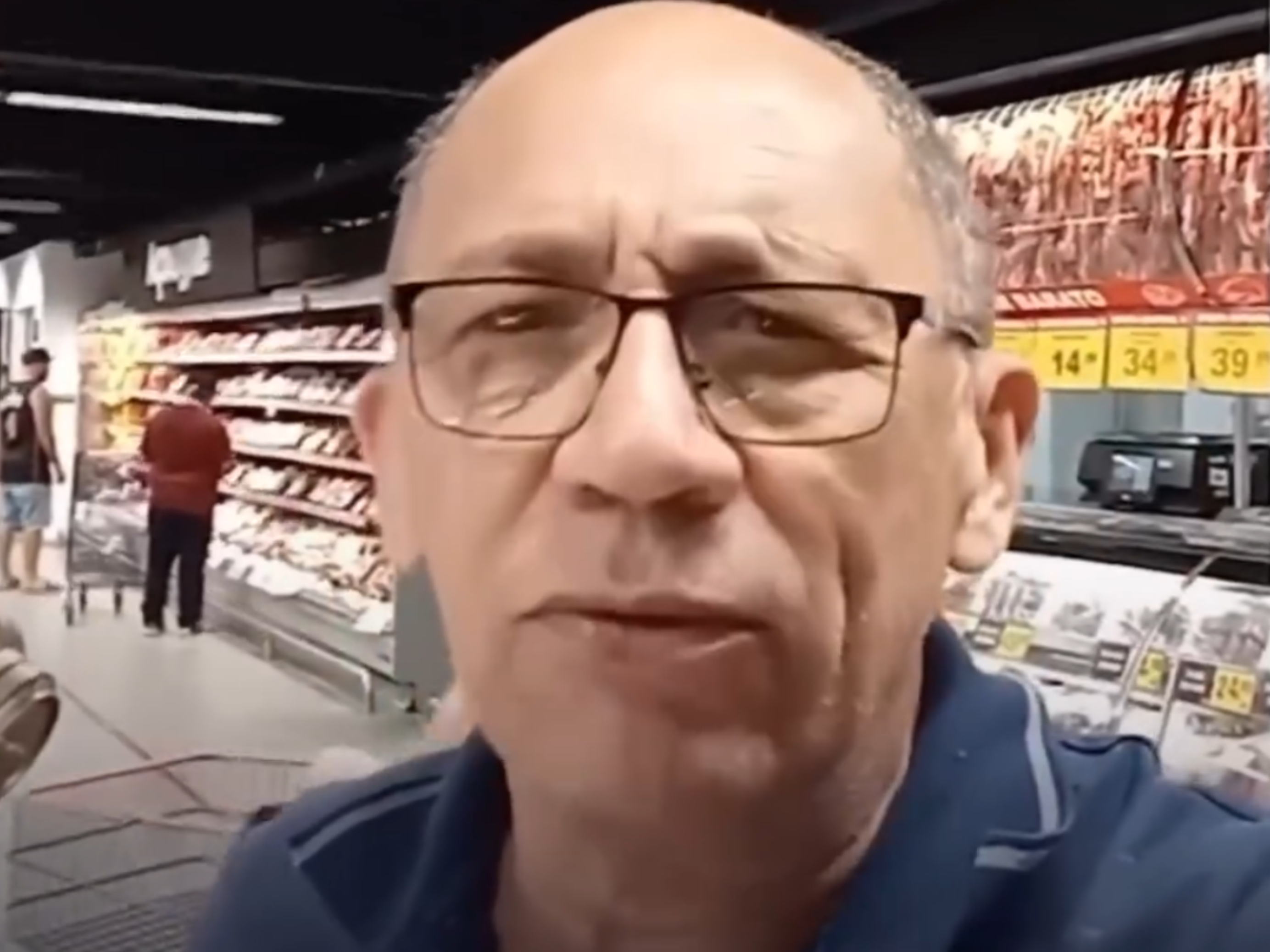 Consumidor grava um vídeo em um supermercado direcionado ao presidente Lula, a quem afirma sempre ter apoiado. No vídeo, ele expressa seu apreço pelo presidente, mas questiona como será possível continuar votando nele diante dos preços elevados das carnes.