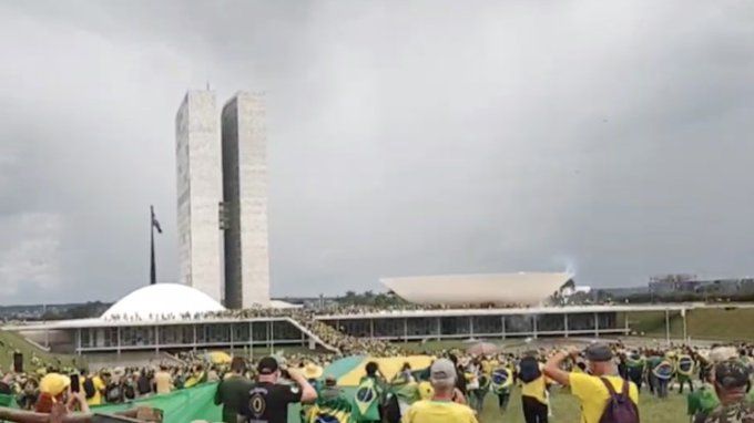 Manifestantes invadiram neste domingo (08/01/2023) o Congresso Nacional depois de romper as barreiras de proteção colocadas pelas forças de segurança.