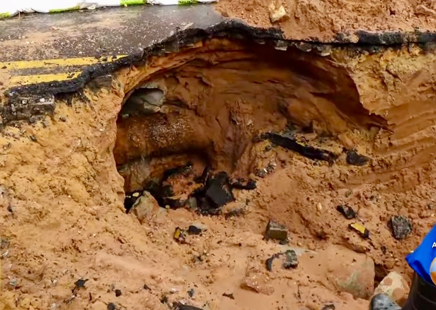 Enorme cratera se forma na avenida Pompeia, em Natal