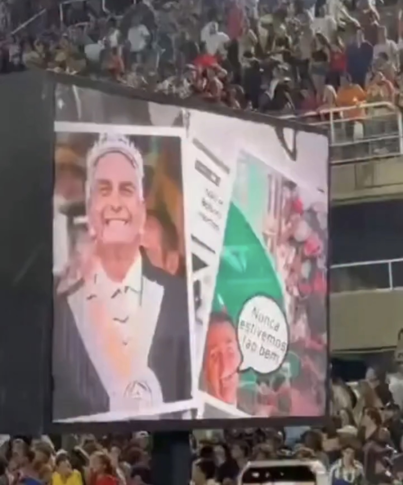 O conteúdo projetado fez menção direta ao ex-presidente Jair Bolsonaro e foi classificado por críticos como de tom ofensivo. As imagens circularam nas redes sociais após serem registradas por pessoas que acompanhavam o ensaio técnico no sambódromo.