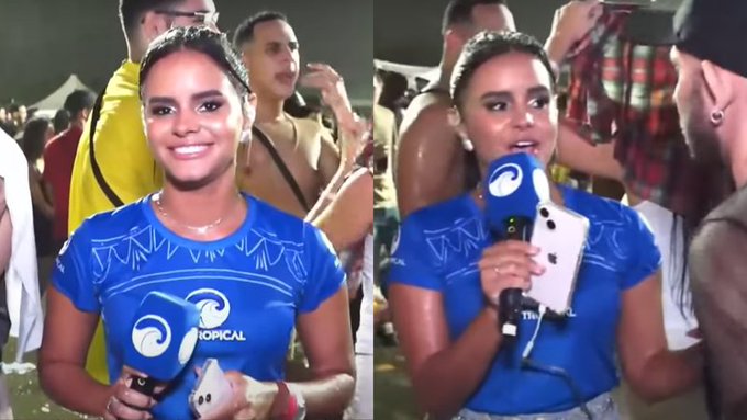 O episódio ocorreu durante uma transmissão ao vivo do São João em Natal. Um homem se interpôs entre o cinegrafista e a repórter. Em seguida, ele se aproximou da jornalista, faz um gesto obsceno e deixa o local.