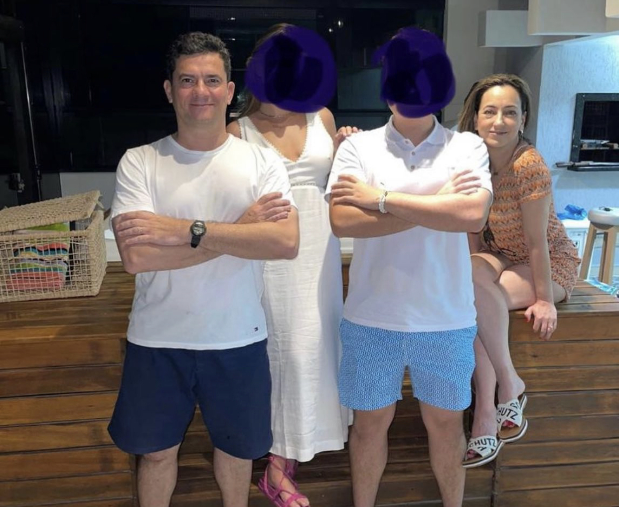Rosângela Wolff Moro, a esposa do juiz Sergio Moro, pré-candidato à Presidência da República pelo Podemos, publicou uma foto da família em seu Instagram e tomou um curioso cuidado redobrado com o casal de filhos: na publicação em que aparece com o esposo, os rostos do casal de filhos estão borrados com o intuito de “evitar haters”. A foto foi divulgada no último dia 31 de dezembro, durante o Réveillon.