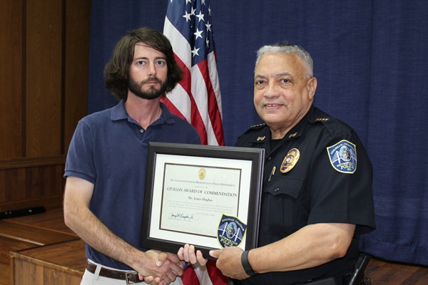SCMPD Chief Joseph H. Lumpkin Sr., apresentou o Prêmio Cidadão de recomendação para Hughes durante uma pequena cerimônia na sede da polícia. Os pais de Hughes, Judy e Andy Hughes, estavam presentes para testemunhar a apresentação do prêmio.