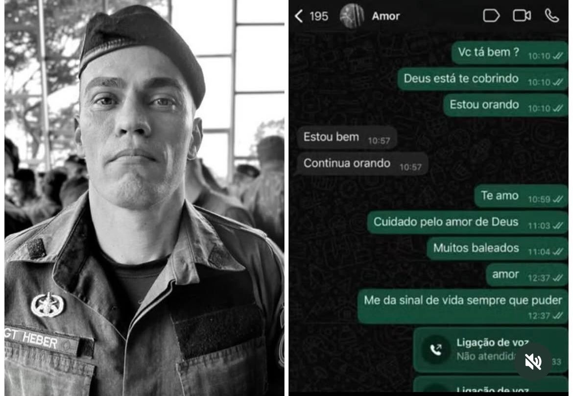 Durante a megaoperação nos complexos do Alemão e da Penha, no Rio de Janeiro, na terça-feira (28), o 3º sargento do Bope, Heber Carvalho da Fonseca, de 39 anos, trocou suas últimas mensagens com a esposa momentos antes de morrer.