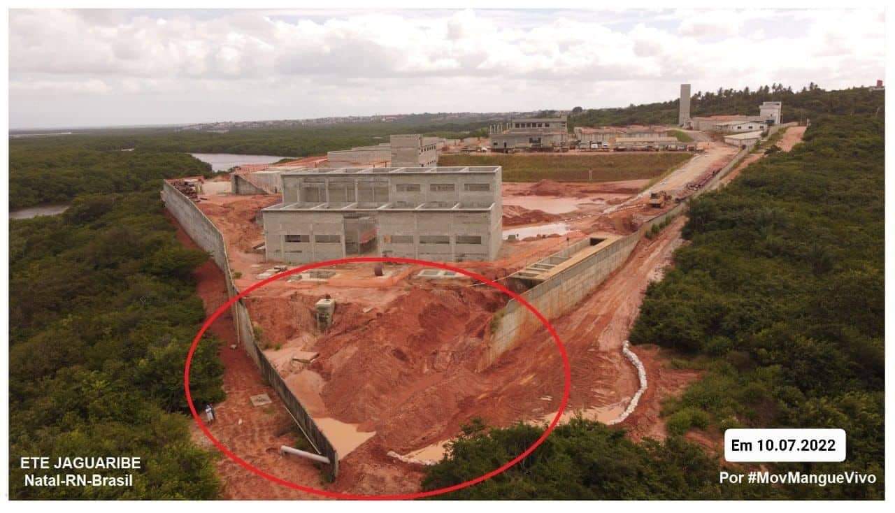 A Estação de Tratamento de Esgoto Jaguaribe, ainda em obra, que atenderá a zona norte de Natal, teve seu projeto de drenagem subdimensionado e não suportou as chuvas fortes, entrando em colapso.
