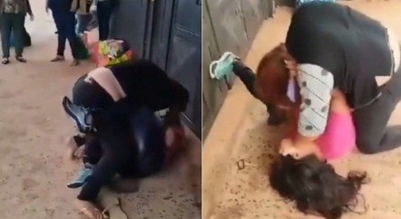Imagens gravadas por quem estava no local mostram as duas mulheres brigando. A confusão, que começa em pé, vai parar no chão, com tapas e puxões de cabelo.