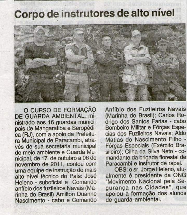 O Ex-fuzileiro Naval tem norral na área de segurança privada, inclusive com passagem por guardas municipais no Estado do Rio de Janeiro.
