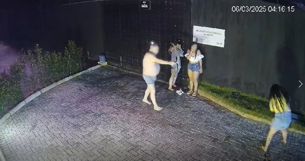 Nas imagens, é possível ver o momento em que duas mulheres aparecem perto de um portão, tentando sair do estabelecimento. Em seguida, um idoso e outra mulher chegam ao local e começam uma discussão. O homem tira uma arma de fogo da cueca e dispara contra uma das mulheres.