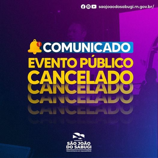 Decidimos cancelar a festa de Emancipação Política e Réveillon do município de São João do Sabugi. Mesmo com a campanha de vacinação avançando e os poucos casos de COVID-19 no município, precisamos resguardar nossa população. Nossa vontade era realizar a festa, porém, não podemos arriscar. A vida vem sempre em primeiro lugar.