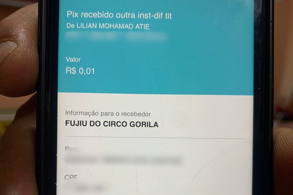 Lilian teria começado a perseguir o professor, em redes sociais e, por isso, ele a bloqueou. Foi quando ela começou a enviar depósitos de R$ 0,01, via Pix, com mensagens de teor racista, chamando o personal de “macaco”, “gorila”, “neguinho” (veja galeria acima).