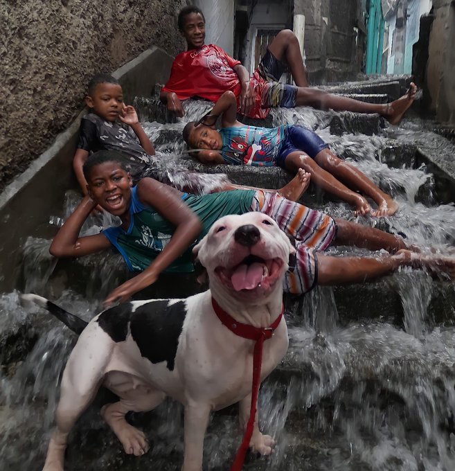 A jovem Carla Vieira, moradora do Morro do Tutano, na região da Tijuca, trouxe um respiro aos moradores do Rio de Janeiro, castigados pelas  fortes chuvas no estado: quatro crianças curtindo uma cascata de água (feita por uma escada) com a cachorra Bela. “Conseguimos ver a essência”, disse uma internauta sobre a imagem feliz.