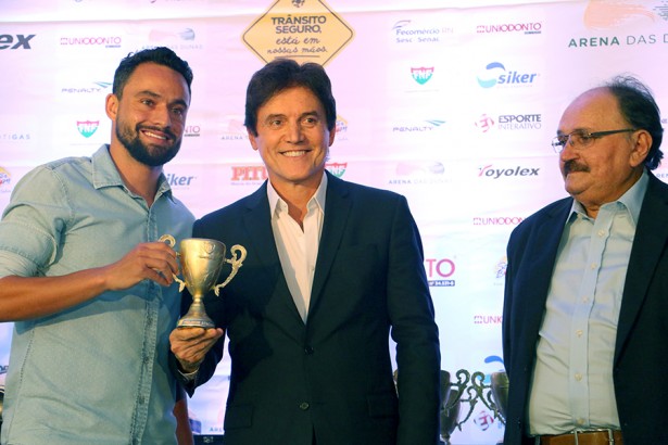 O governador ainda recebeu do presidente da FNF, José Vanildo, uma medalha semelhante a que foi entregue aos jogadores do ABC, vencedores do segundo turno do estadual, e um troféu igual aos recebidos pelos premiados da noite, em razão do apoio do Estado ao campeonato.