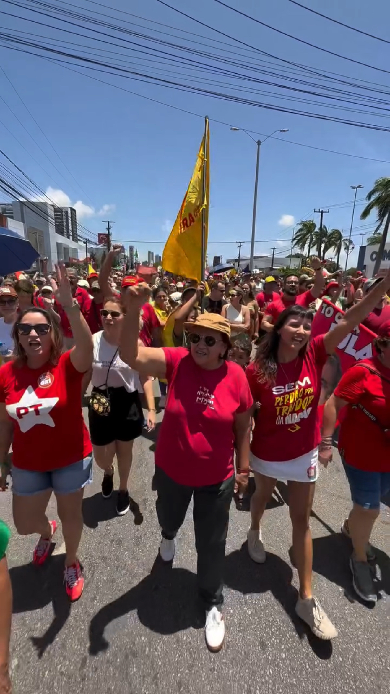 Ao lado de lideranças políticas e movimentos sociais, Fátima liderou a militância em defesa da democracia. Durante a manifestação, palavras de ordem ecoaram pelas ruas da capital potiguar, com destaque para o grito de “sem anistia”, entoado pelos participantes.