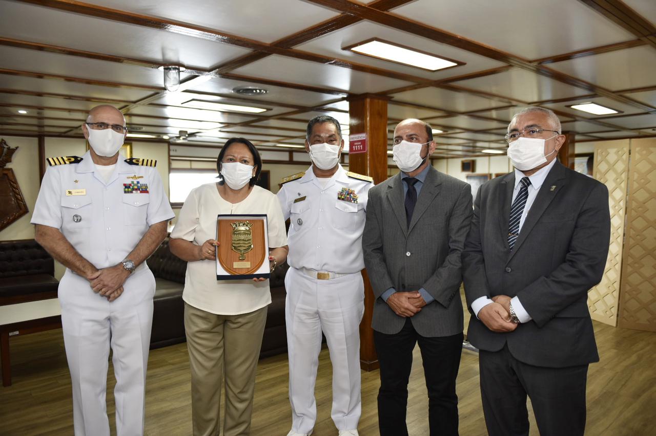 A bordo do navio Navio-escola Brasil, que está atracado no Porto de Natal, Fátima Bezerra tratou sobre o aprimoramento das atividades econômicas realizadas no mar e na costa e da defesa do patrimônio ambiental.