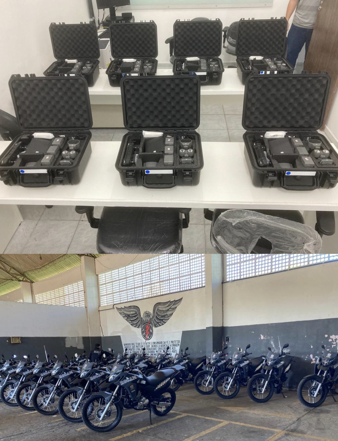 Destaca-se na entrega para a Polícia Militar, 50 motocicletas, 15 bicicletas equipadas, 2.157 coletes balísticos, 574 capacetes de diferentes níveis de proteção, 14 drones e um ultrassom. No total, a PM soma R$ 5.989.379,36 em investimentos.