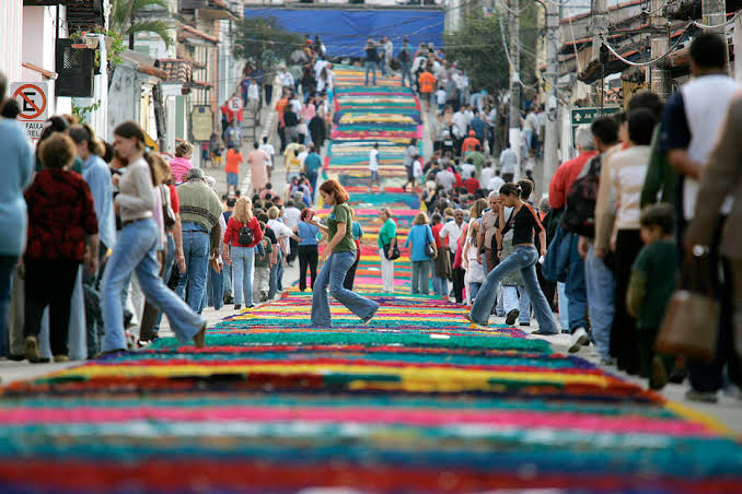 As celebrações religiosas são conhecidas pelos famosos tapetes coloridos, por onde passam as procissões com a hóstia consagrada.