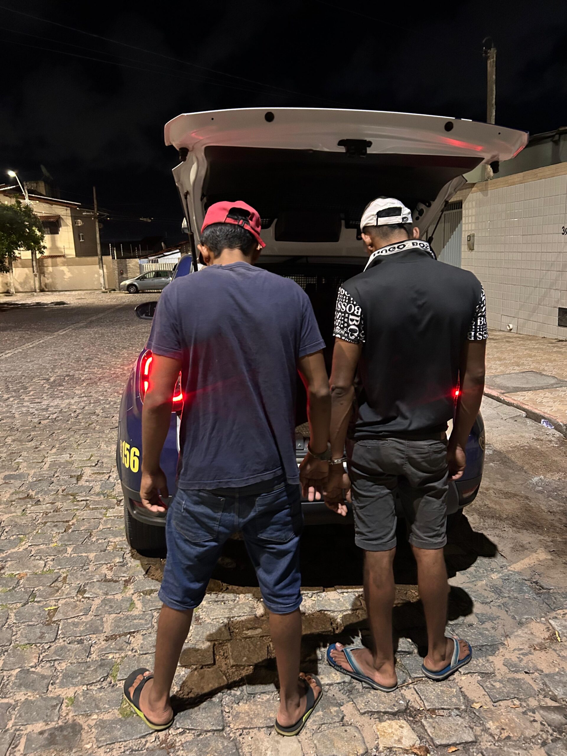 Durante a revista pessoal, foi localizado com a dupla um aparelho celular com restrição por furto/roubo. Diante do flagrante delito, os suspeitos foram conduzidos à 3ª Delegacia de Plantão de Parnamirim para a adoção das medidas cabíveis. A ocorrência foi apresentada à autoridade policial para os procedimentos legais.