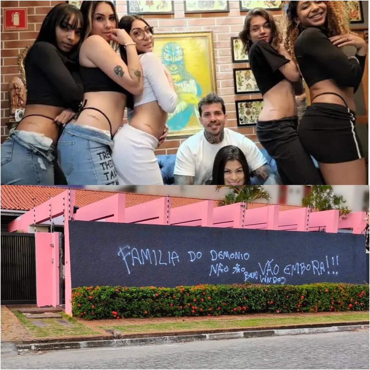 “Família do demônio. Não são bem-vindos. Vão Embora”, dizia a pichação no muro, que teve a foto compartilhada pelo influenciador no Instagram.