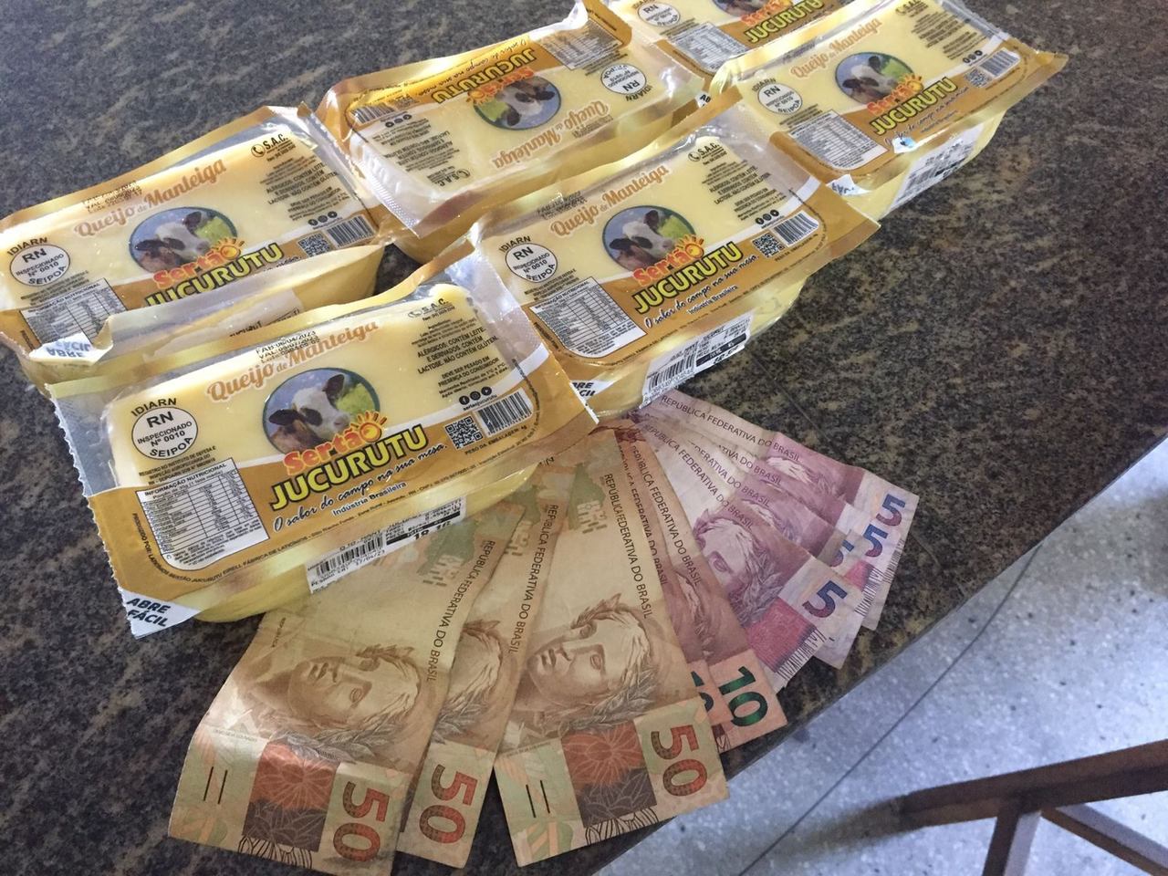 Com o suspeito, os militares encontraram seis pacotes de queijo e R$ 190 em cédulas, que teriam sido adquiridos após as vendas de outros produtos roubados do supermercado. Ele foi encaminhado para a Delegacia de Plantão da zona Norte de Natal. Segundo o policial, o homem relatou que era trabalhador.